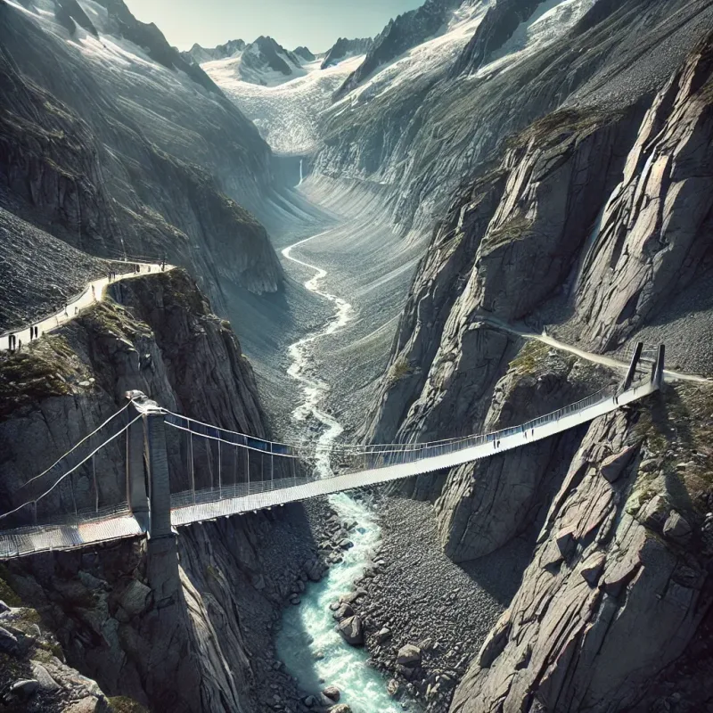 스위스 알프스에 위치한 트리프티 브리지는 높이 100미터 이상의 절벽 사이에 위치한 현수교입니다. 이 다리는 알프스 산맥의 아름다운 전경을 제공하지만, 다리 자체가 매우 얇고 흔들림이 심해 많은 방문객들이 건너는 동안 큰 두려움을 느낍니다. 특히 다리 아래로 깊은 협곡이 있어, 안전 장비 없이 이 다리를 건너는 것은 상당한 용기가 필요합니다.