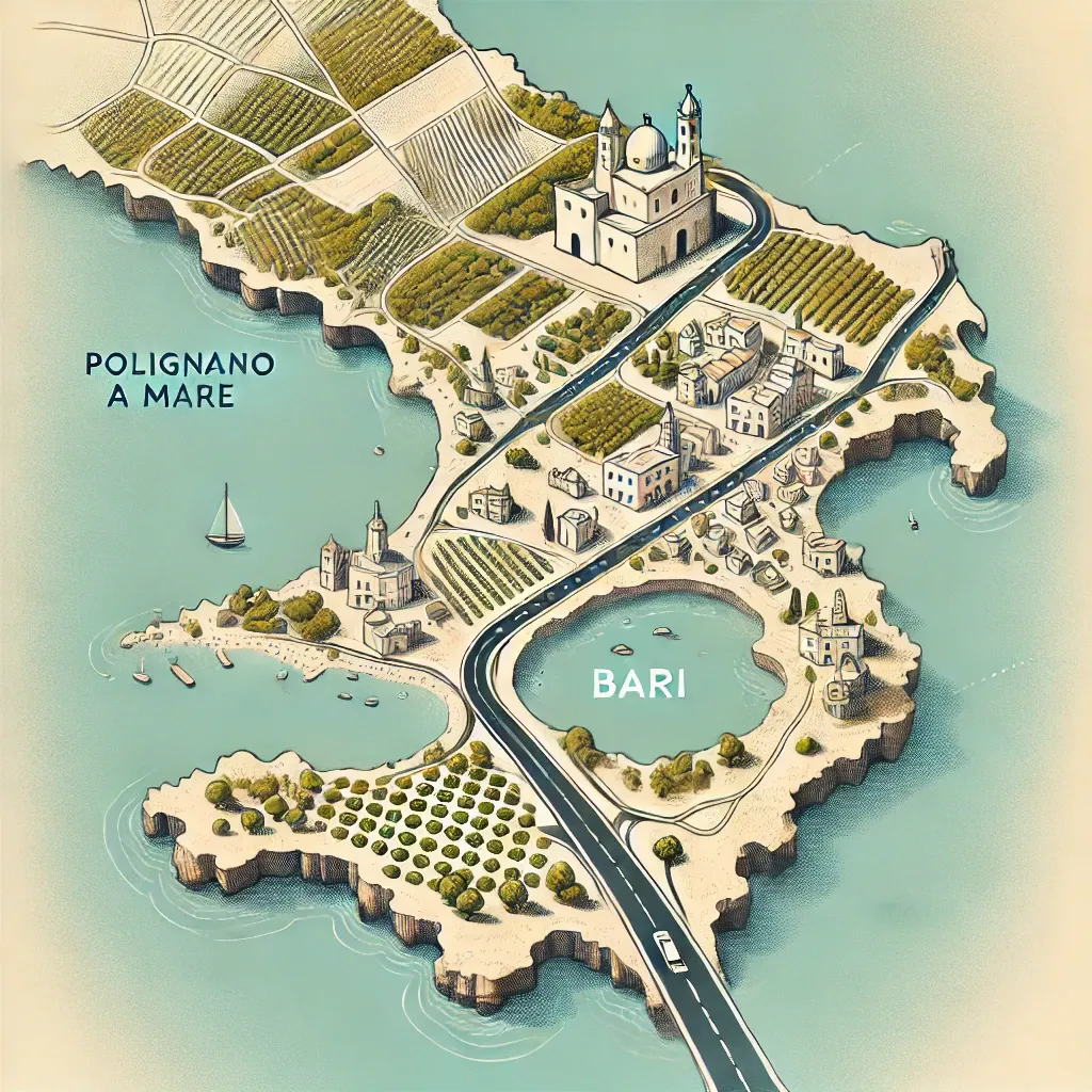 폴리냐노 아 마레는 이탈리아 남부의 대표적인 도시인 바리와 가깝기 때문에 여행 일정을 짜기에도 편리합니다. 바리에서 기차로 약 30분 정도만 이동하면 폴리냐노 아 마레에 도착할 수 있어, 바리와 폴리냐노 아 마레를 함께 방문하는 여행 코스를 계획하기 좋습니다. 바리의 도시적 매력과 폴리냐노 아 마레의 자연미를 동시에 즐길 수 있는 것은 이 지역 여행의 큰 장점 중 하나입니다.