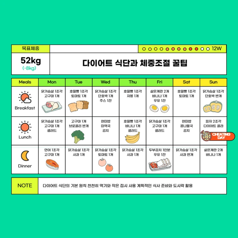 - 효과: 계획적으로 식사를 준비하면 외식과 충동적인 간식 섭취를 줄일 수 있습니다.