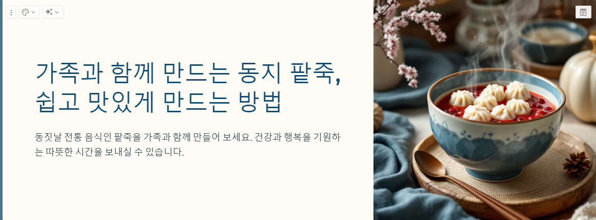 팥죽은 만들기도 중요하지만, 가족과 함께 먹는 시간이 더 소중하답니다!