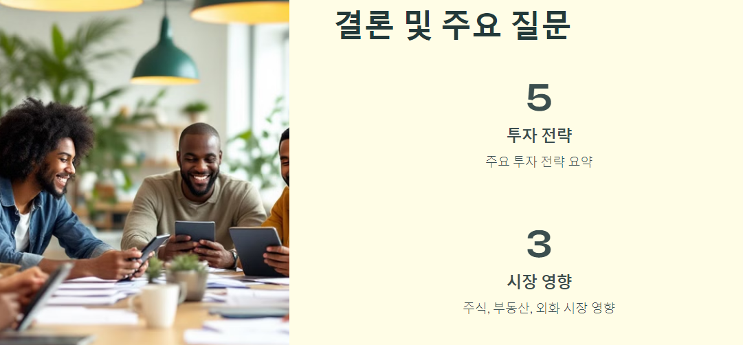 - 개인 맞춤형 전략 수립: 투자자의 재무 상태와 목표에 맞는 전략을 세우는 것이 중요합니다.