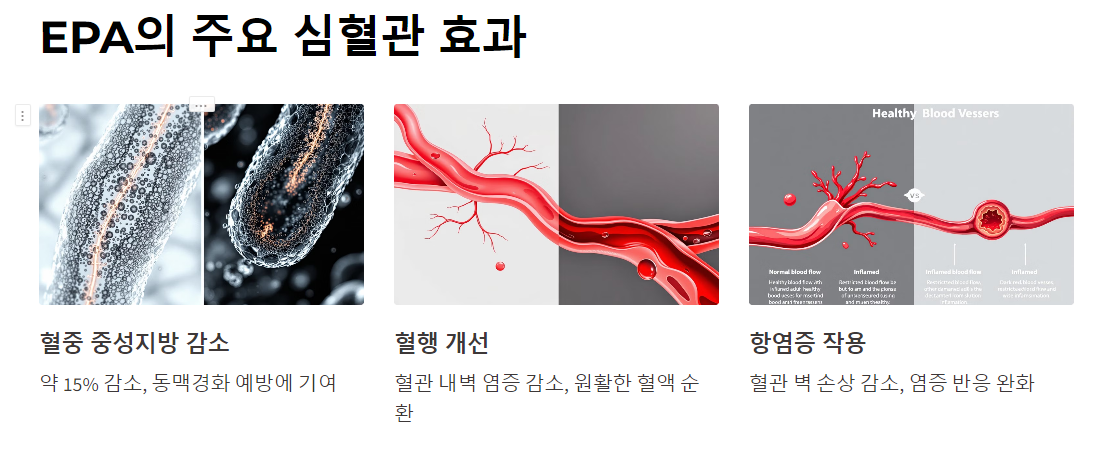 EPA는 동맥경화, 심근경색, 뇌경색 등의 심혈관 질환 예방에서 핵심적인 작용을 하며, 특히 혈중 중성지방 감소와 항염증 효과로 주목받고 있습니다. 본 글에서는 EPA의 주요 효과와 이를 뒷받침하는 임상 연구 결과, 주의사항 등을 심층적으로 다루겠습니다.
