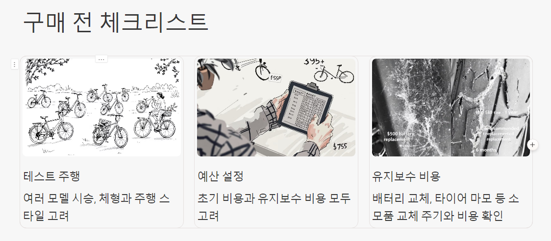 전기자전거를 구매하기 전 다음 체크리스트를 활용해보세요.