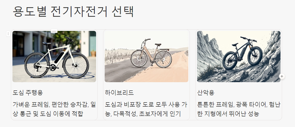전기자전거를 선택할 때는 단순히 디자인이나 가격뿐 아니라, 배터리 용량, 모터 출력, 프레임 소재 등 다양한 요소를 고려해야 합니다.