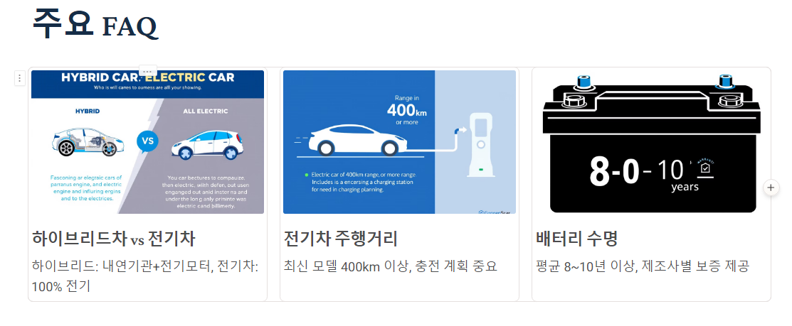 - 하이브리드차와 전기차의 주요 차이점은 무엇인가요?