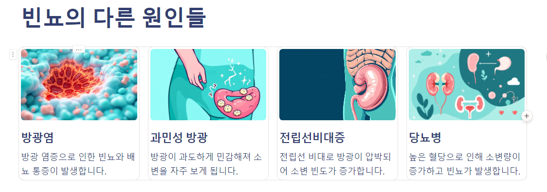 만약 빈뇨 증상이 지속되거나 심각한 경우에는 비뇨기과를 방문해 정확한 진단을 받는 것이 중요합니다.