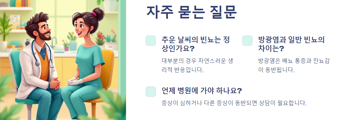 추운 날씨에 소변이 자주 마려운 이유와 이를 줄이기 위한 대처 방법을 알아보세요. 빈뇨 증상의 원인과 관리법을 통해 건강을 지키세요.