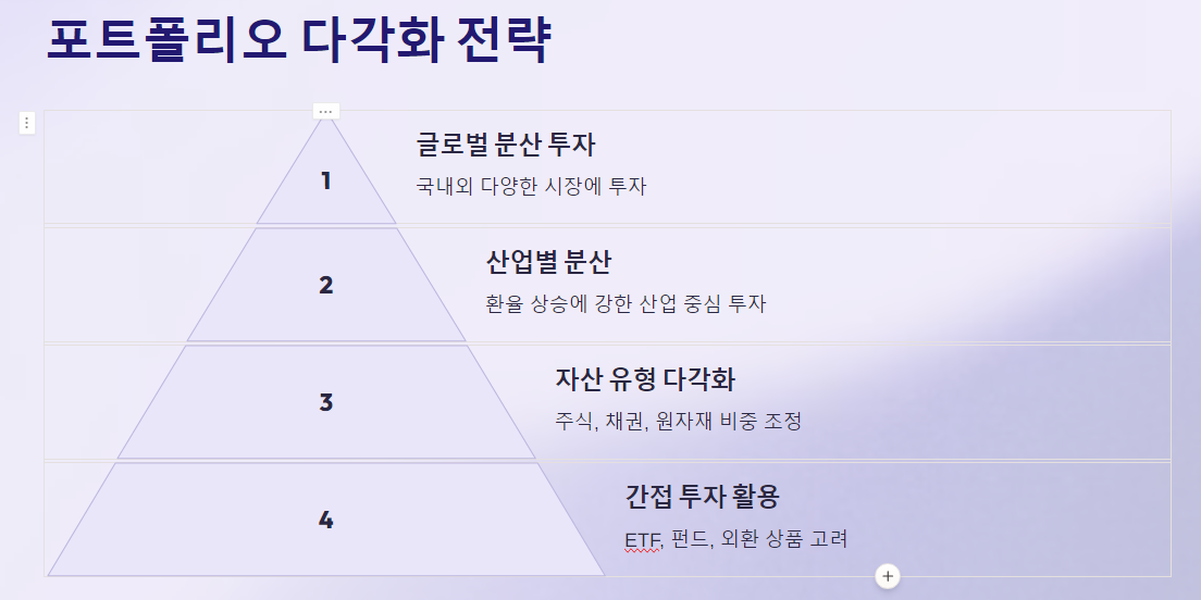 다각화는 환율 상승기에 중요한 투자 전략입니다.