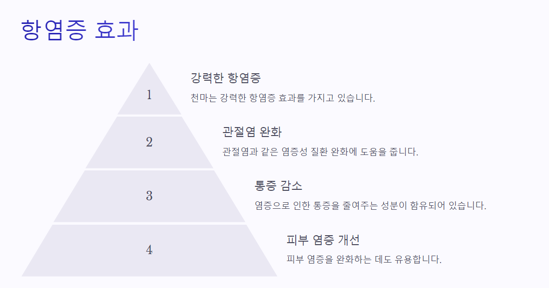천마는 강력한 항염증 효과를 가지고 있습니다.