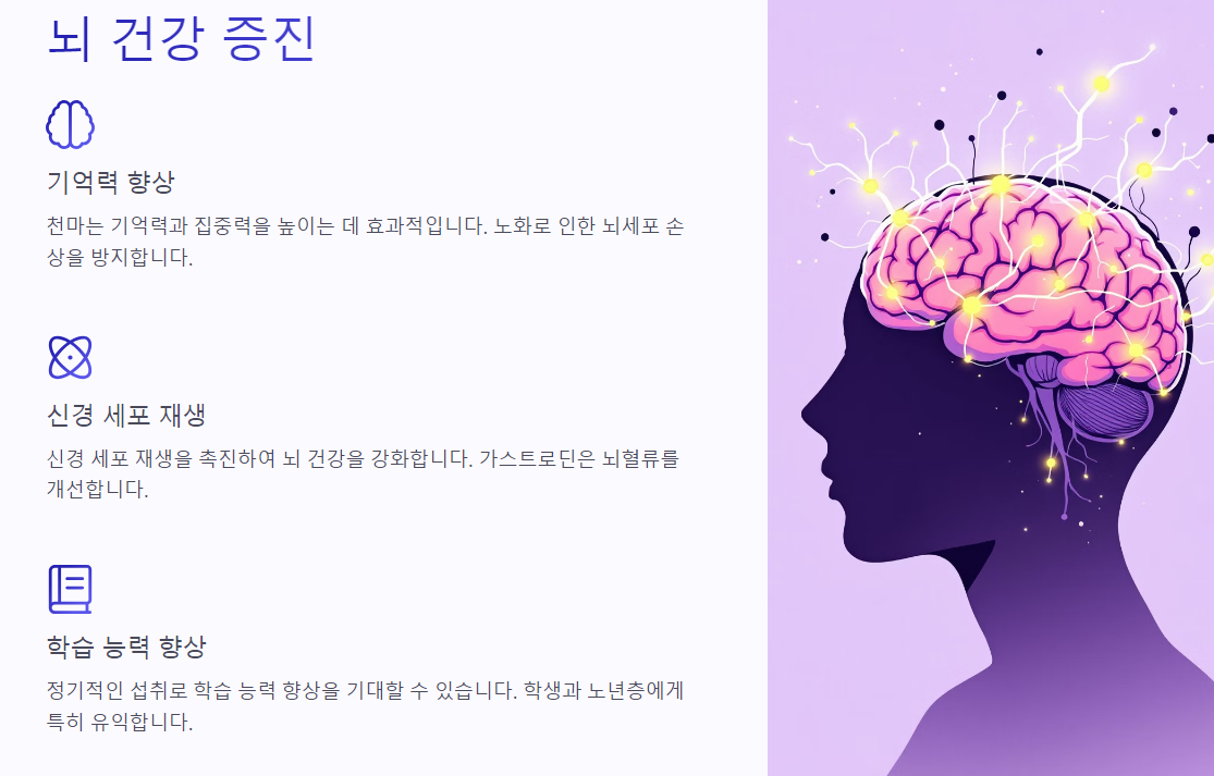 천마는 기억력과 집중력을 높이는 데 효과적입니다.