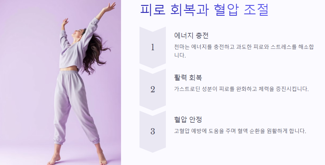 천마는 에너지를 충전하는 데 도움을 줍니다.