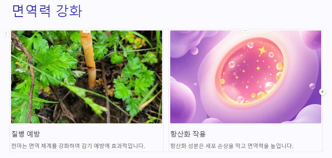 천마는 면역 체계를 강화하는 데 도움을 줍니다.