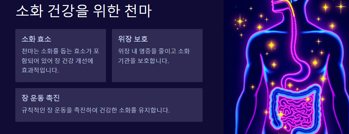 천마는 소화를 돕는 효소가 포함되어 있습니다.