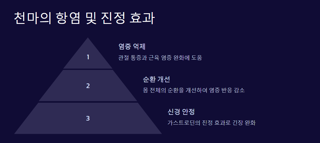 천마는 긴장 완화와 진정 효과를 제공합니다.