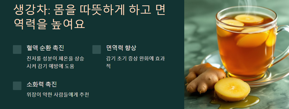 생강차: 몸을 따뜻하게 하고 면역력을 높여요