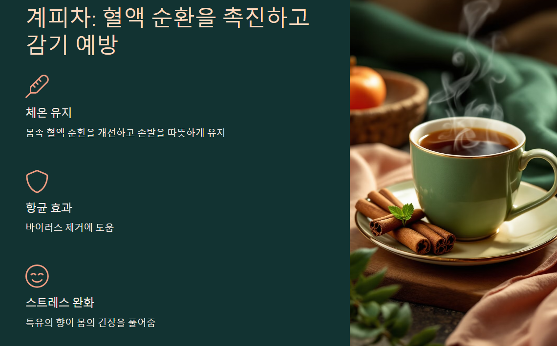 계피차: 혈액 순환을 촉진하고 감기 예방