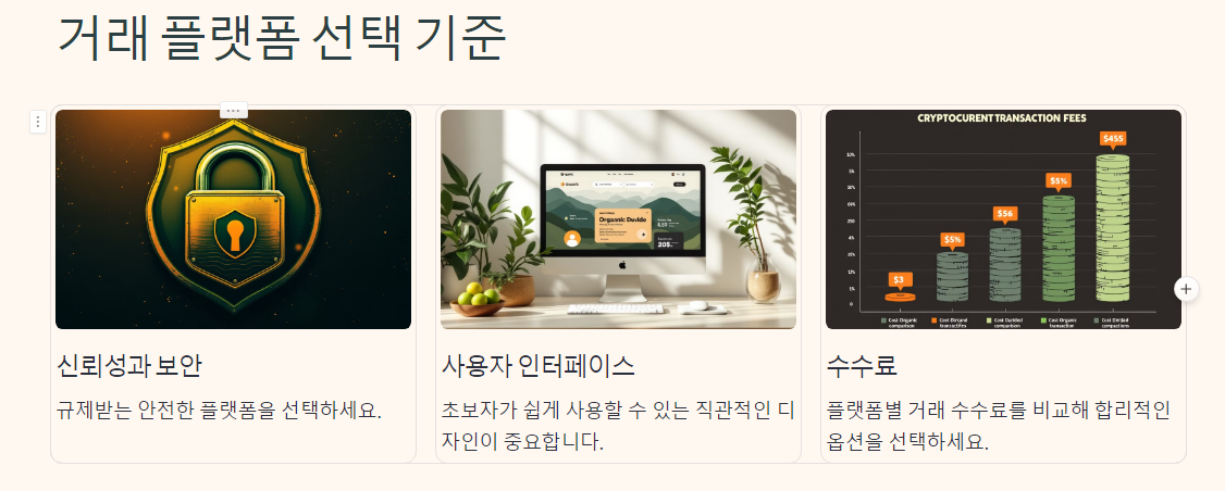 입출금 편리성: 원화(KRW) 입출금이 가능한 플랫폼이 초보자에게 유리합니다.