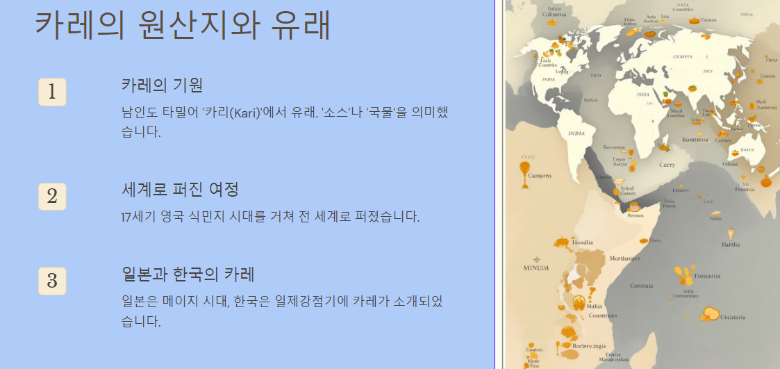 카레는 17세기 영국의 식민지 시대를 거치며 전 세계로 퍼지기 시작했습니다. 특히, 영국은 인도의 향신료를 자신들의 입맛에 맞게 재해석하여 유럽식 카레를 발전시켰습니다. 이로 인해 카레는 단순한 인도의 음식에서 벗어나 세계적인 요리가 되었습니다.