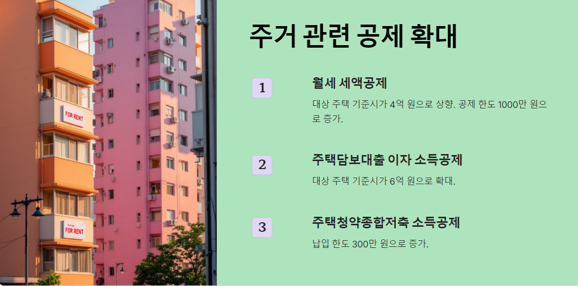 주거비 부담 완화를 위해 관련 공제도 대폭 강화되었습니다.
