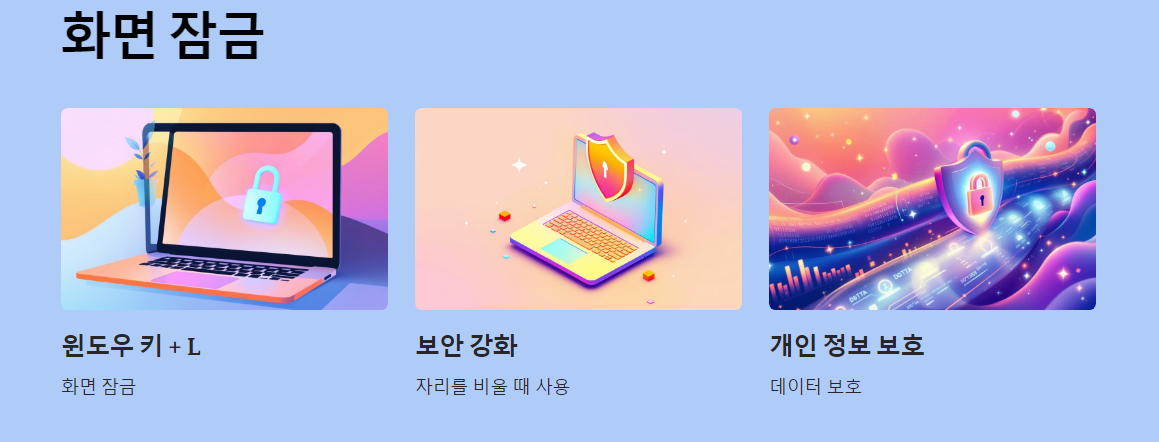 자리를 비울 때 "윈도우 키 + L"을 사용하여 화면을 즉시 잠글 수 있습니다. 보안을 유지하고 개인 정보를 보호하는 데 효과적입니다.