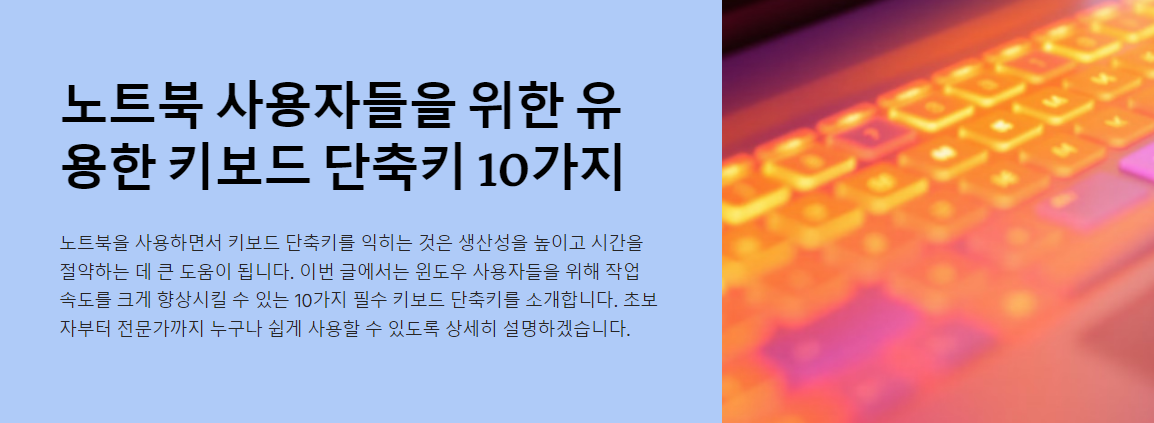 노트북을 사용하면서 키보드 단축키를 익히는 것은 생산성을 높이고 시간을 절약하는 데 큰 도움이 됩니다.