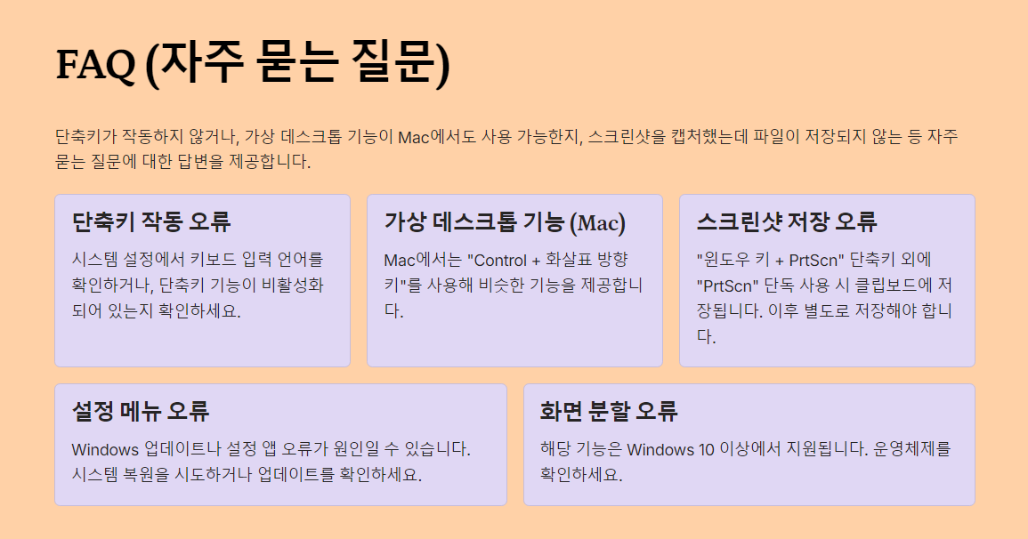 - 화면상의 오류를 캡처해 기술 지원팀에 전달.