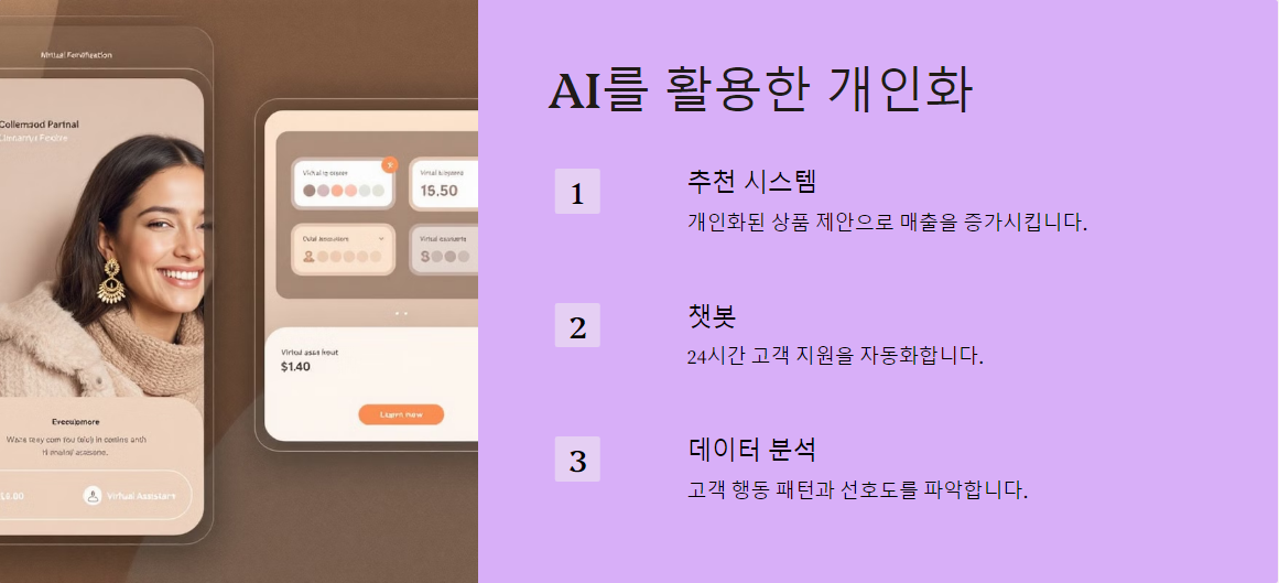 AI 기술은 전자상거래에서 고객 맞춤형 경험을 제공하는 데 중요한 역할을 합니다.