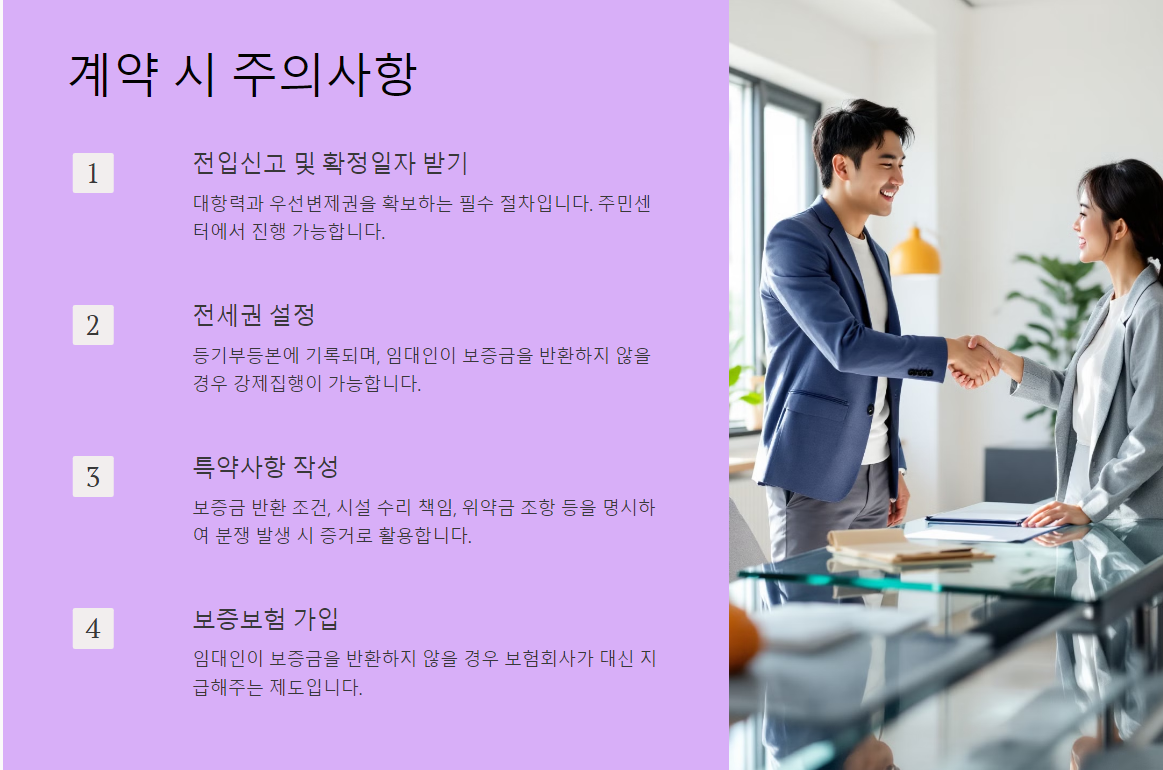 - 가입 절차: 보증보험 가입은 HUG(주택도시보증공사)나 SGI서울보증 등에서 진행할 수 있습니다.
