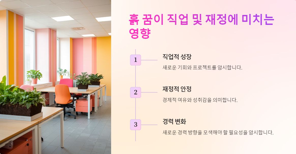 결론적으로 흙 꿈은 직업적 성장과 재정적 안정을 위한 긍정적인 변화를 예고하거나, 잠재적인 장애물을 극복하기 위한 경고의 메시지를 담고 있습니다. 꿈에서 흙의 상태와 꿈 속 활동을 면밀히 분석하여 현재의 상황과 대비하며 적절한 결정을 내리는 것이 중요합니다.