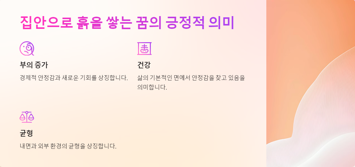 집안으로 흙을 쌓는 꿈의 긍정적 의미
