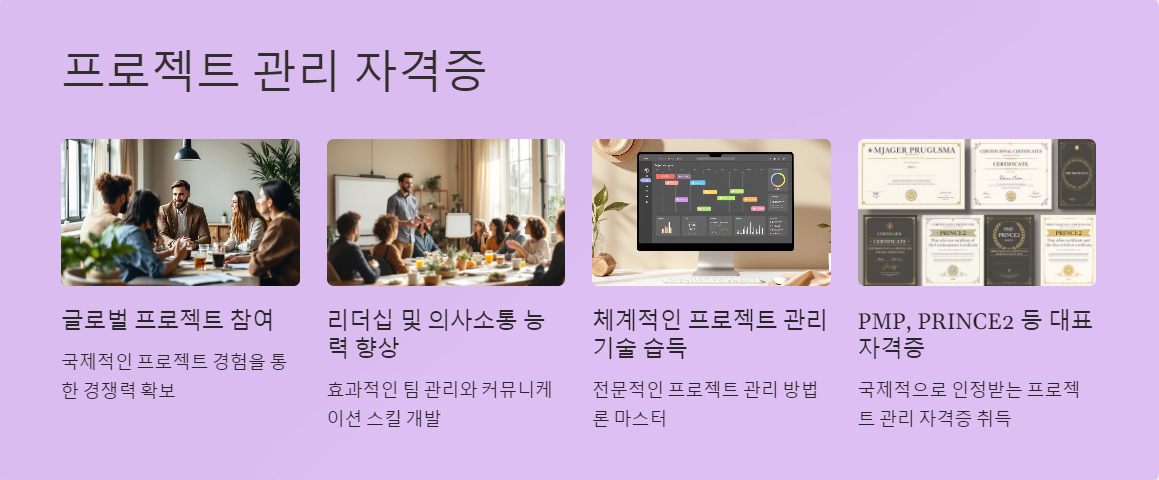 이 자격증들은 프로젝트 기획, 실행, 모니터링 기술을 강화합니다.