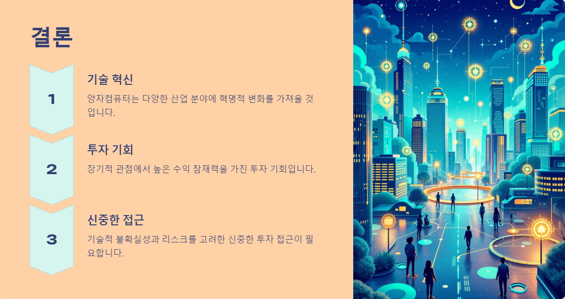 양자컴퓨터가 상용화되면 기존 산업의 패러다임을 완전히 바꿀 가능성이 크기 때문에, 초기 투자자의 경우 높은 수익을 기대할 수 있는 분야로 손꼽히고 있어요. 하지만 투자 리스크도 분명히 존재하기 때문에 다음 섹션에서 이를 자세히 다뤄볼게요.
