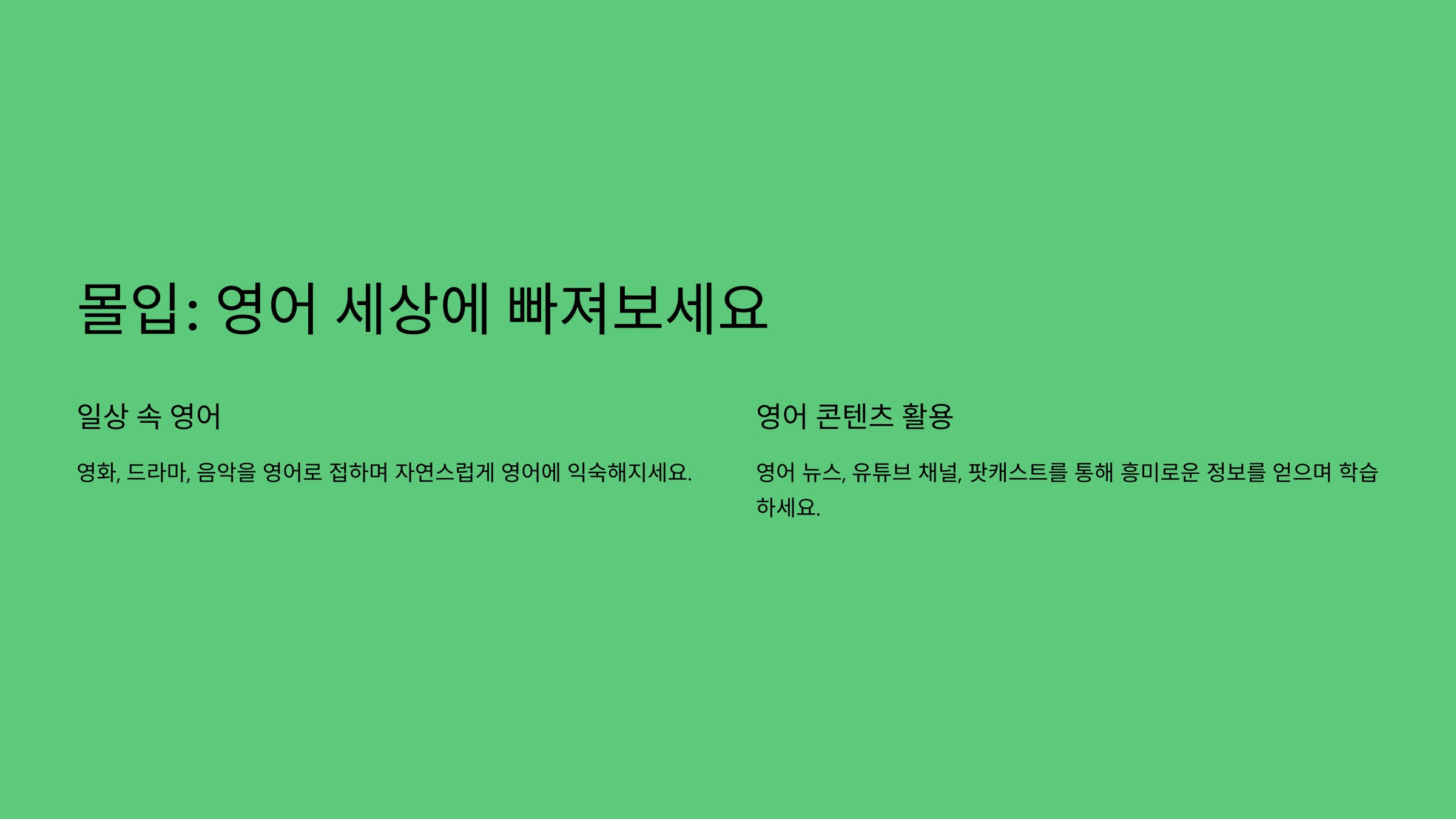 몰입을 통해 새로운 표현을 배우고 즉각적으로 적용할 수 있습니다.