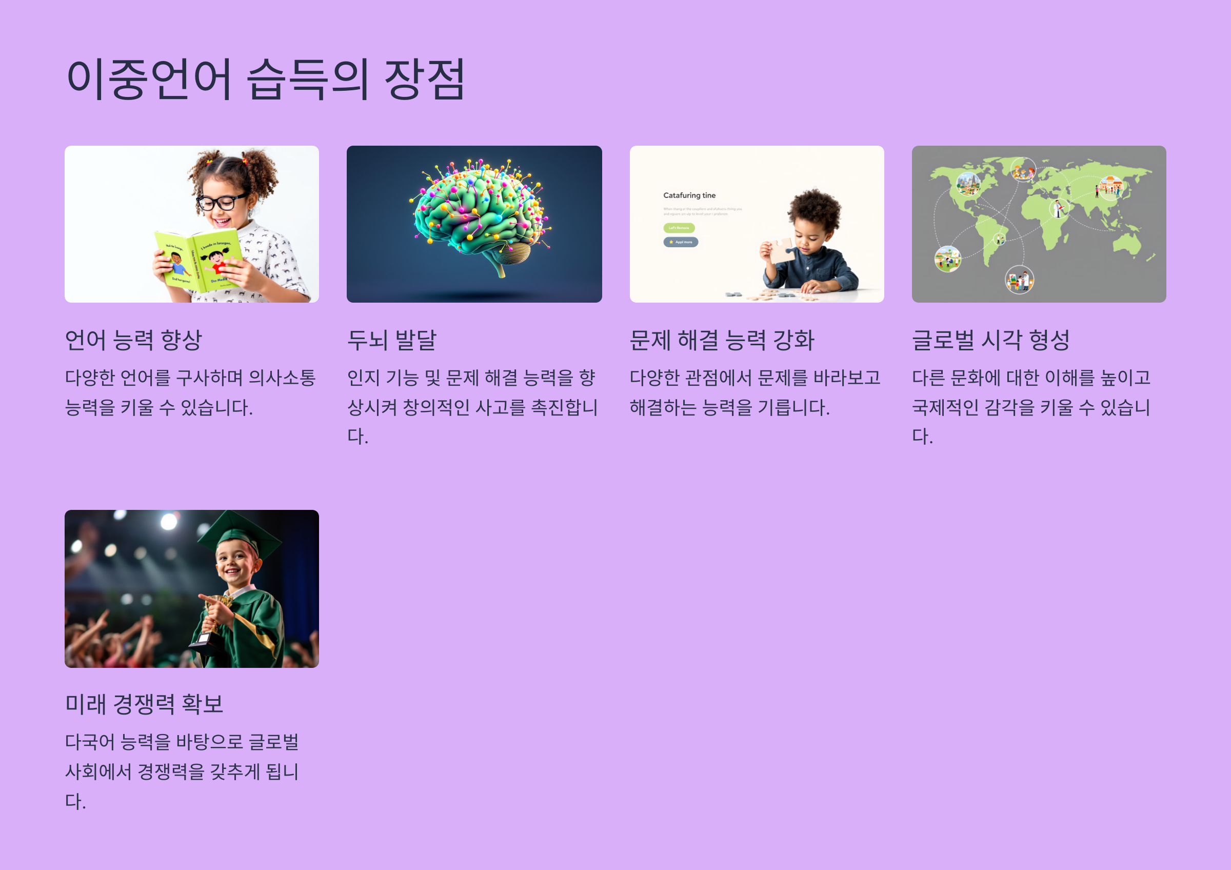 아이들이 두 가지 언어를 동시에 배울 때 얻게 되는 장점은 정말 많아요. 이중언어 습득은 단순히 언어 능력 향상뿐 아니라 두뇌 발달, 문제 해결 능력, 창의력 강화에도 큰 영향을 미친답니다. 실제로 연구에 따르면, 이중언어를 사용하는 아이들이 집중력과 기억력이 더 뛰어나다는 결과도 있어요.
