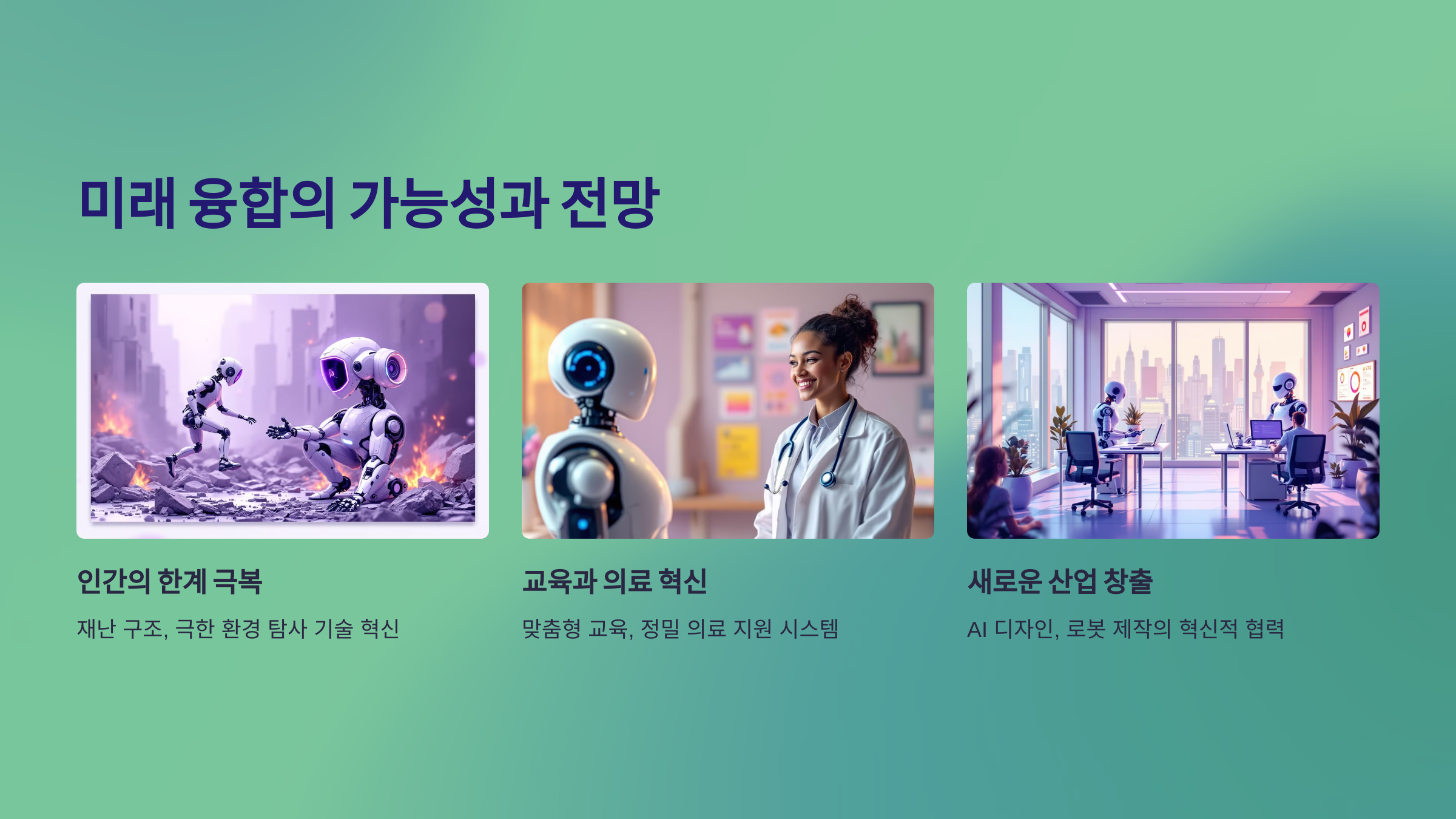 A3. 미래에는 이 두 기술이 협력해 의료, 교육, 산업 등 다양한 분야에서 인간의 한계를 극복할 수 있는 새로운 시스템을 창출할 가능성이 높아요.