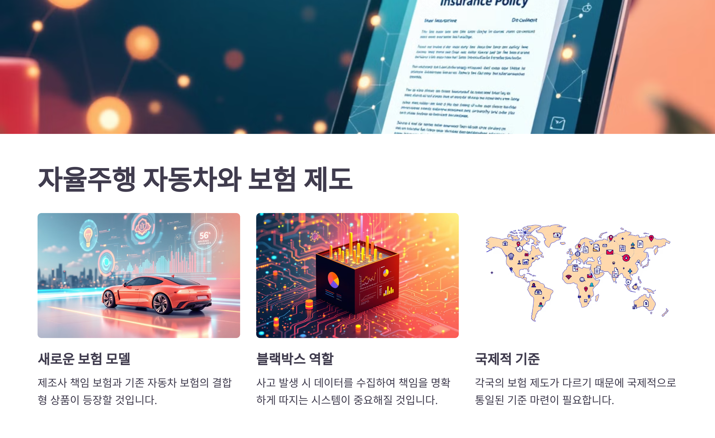 향후 보험 시장에서는 제조사 책임 보험(Product Liability Insurance)과 기존 자동차 보험의 결합형 상품이 등장할 가능성이 높아요. 또한, 사고 발생 시 데이터를 수집하여 책임을 명확하게 따지는 '블랙박스' 역할을 하는 시스템도 중요해질 거예요.