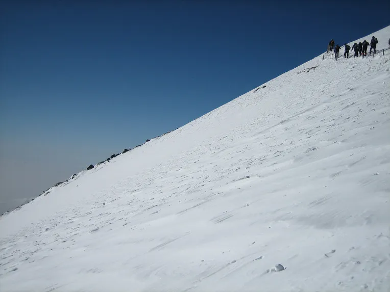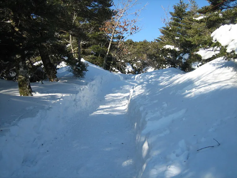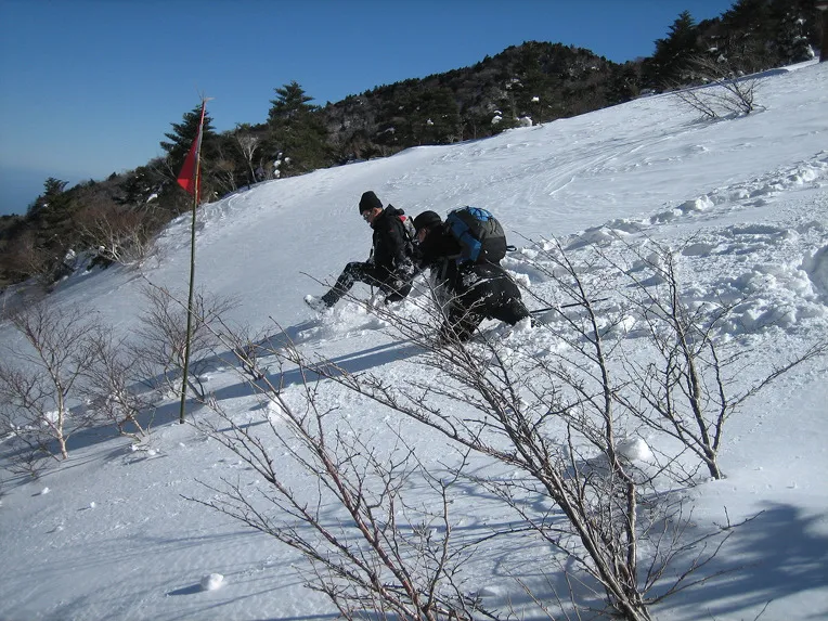 진달래밭부터는 본격적인 오르막길이 시작되며, 겨울철에는 눈이 많이 쌓여 있어요. 경사가 급해지는 구간이므로 아이젠을 단단히 고정하고 천천히 올라가야 해요. 🚶♂️