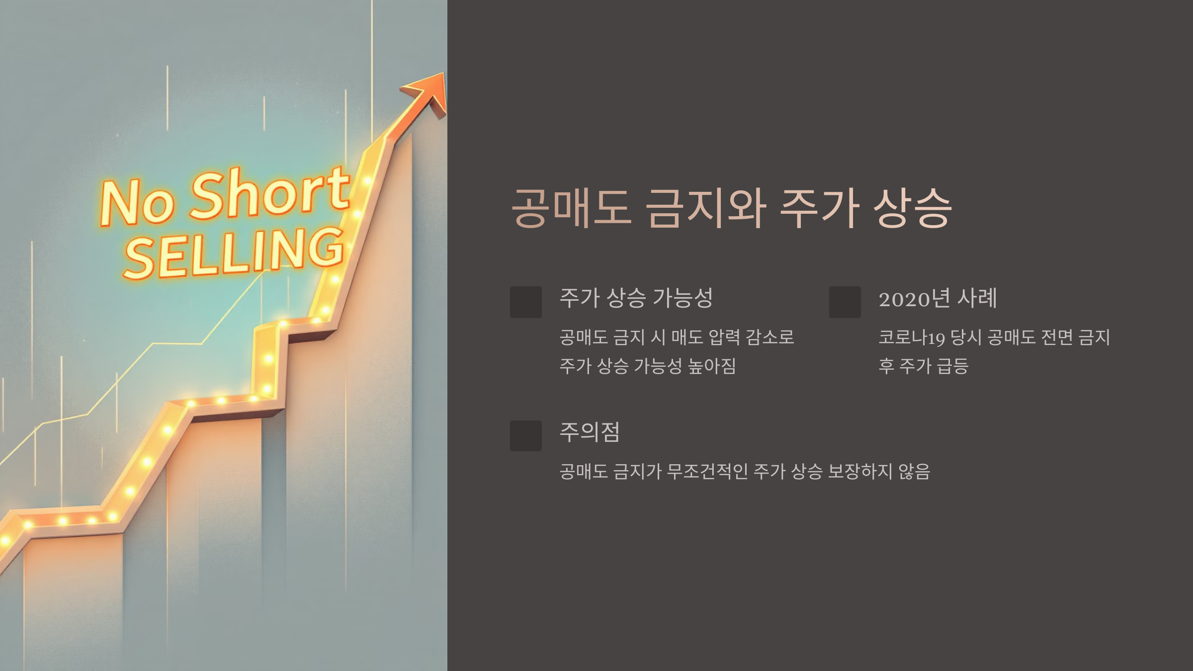 공매도 제한 이후 주식 시장은 보통 단기적으로 상승하는 모습을 보여요. 하지만 시간이 지나면서 기업 실적이 중요해지고, 시장의 본질적인 흐름으로 돌아가게 돼요.