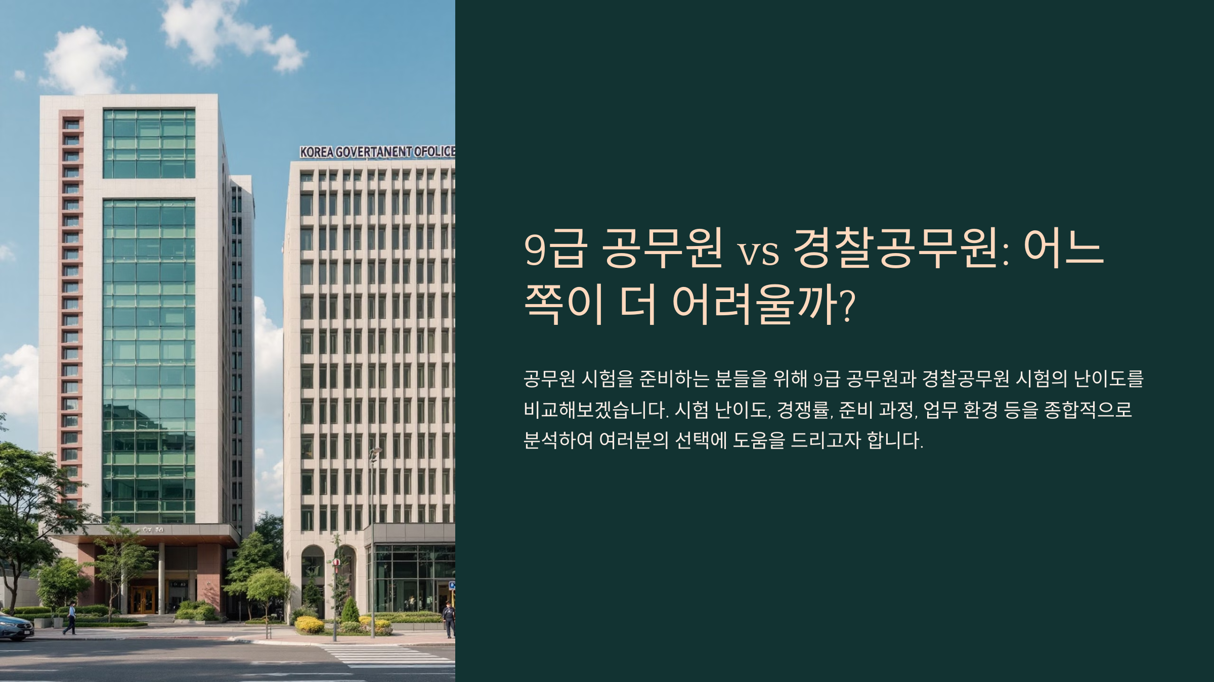 📚 9급 공무원 시험과 경찰공무원 시험의 난이도를 비교하려면, 필기 시험과 그 외 요소들을 함께 고려해야 해요. 두 시험 모두 국가직 시험이지만, 출제 방식과 요구되는 역량이 다르답니다.