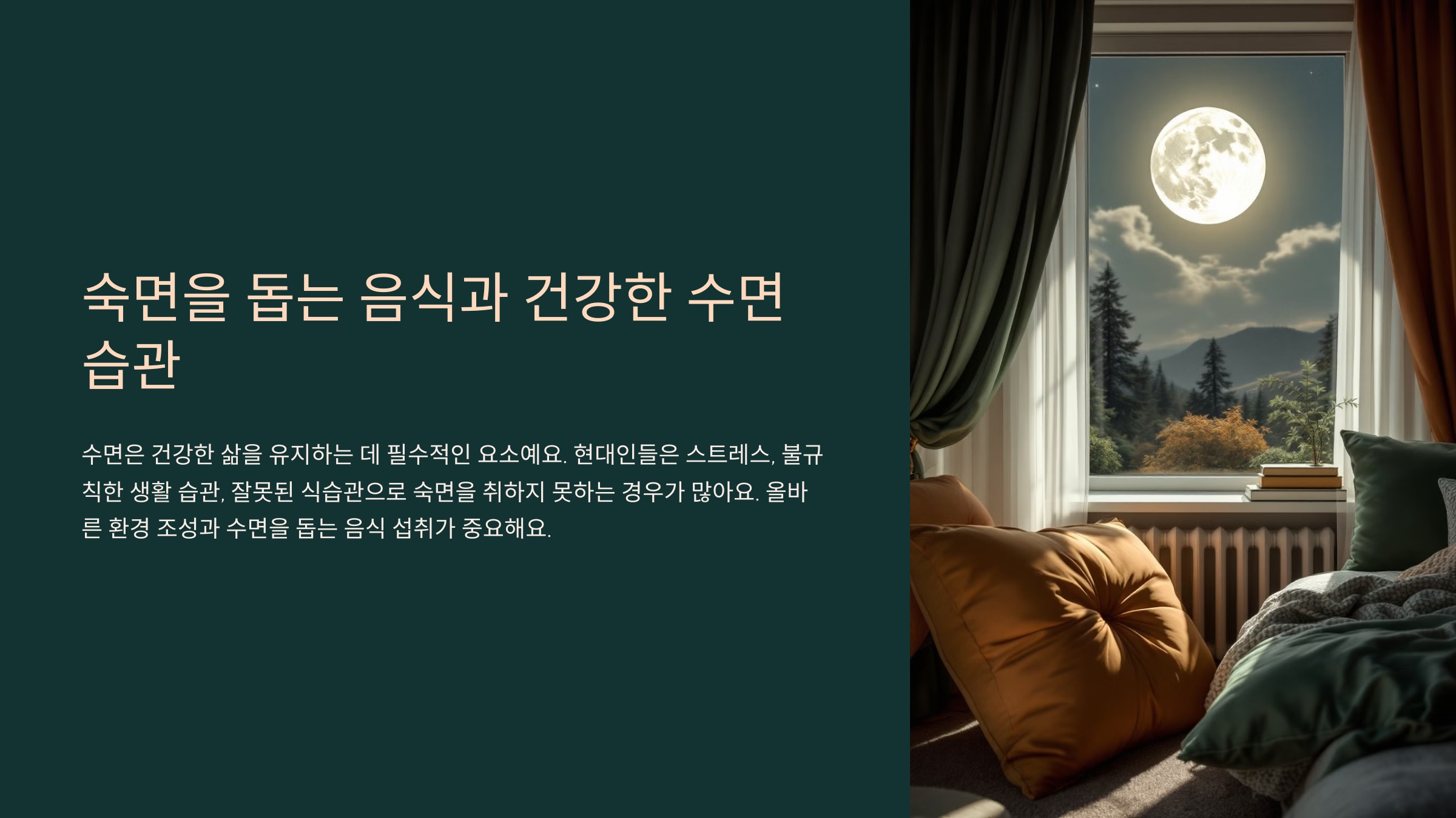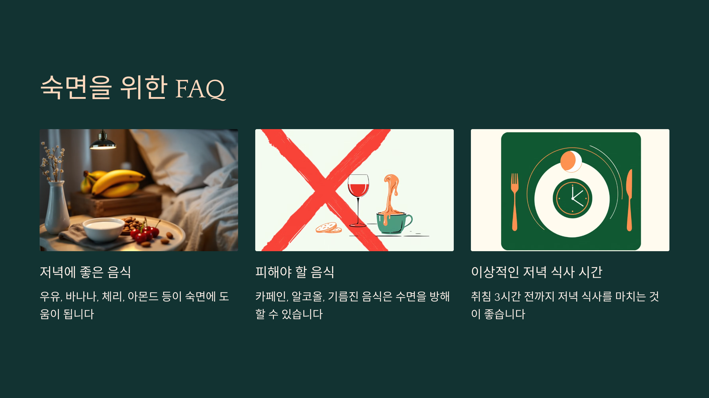 다음 섹션에서는 숙면을 돕는 음식과 관련된 상세한 내용을 알려드릴게요! 😊