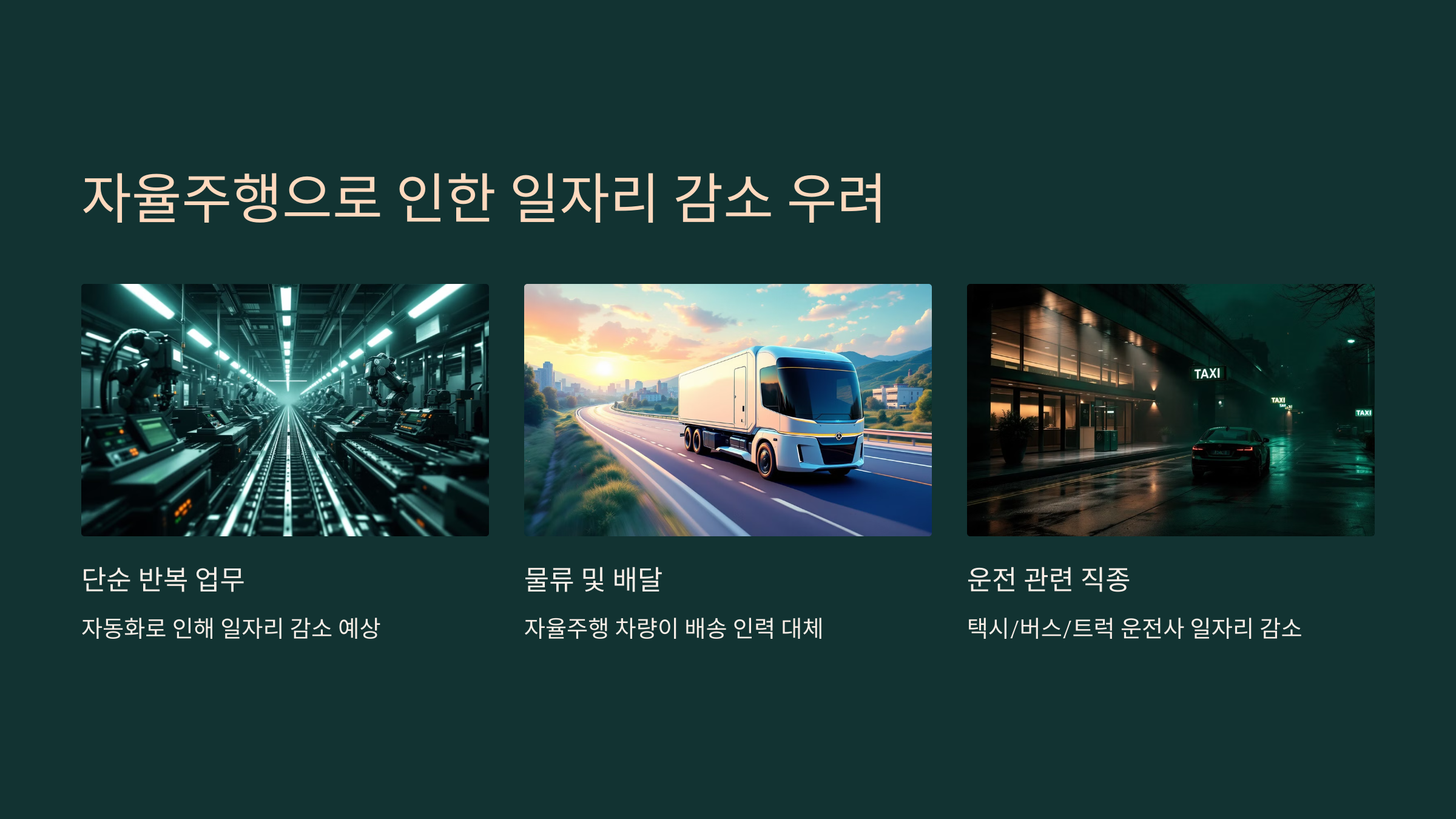 자율주행 기술은 일부 직종의 일자리 감소를 초래할 수 있습니다.