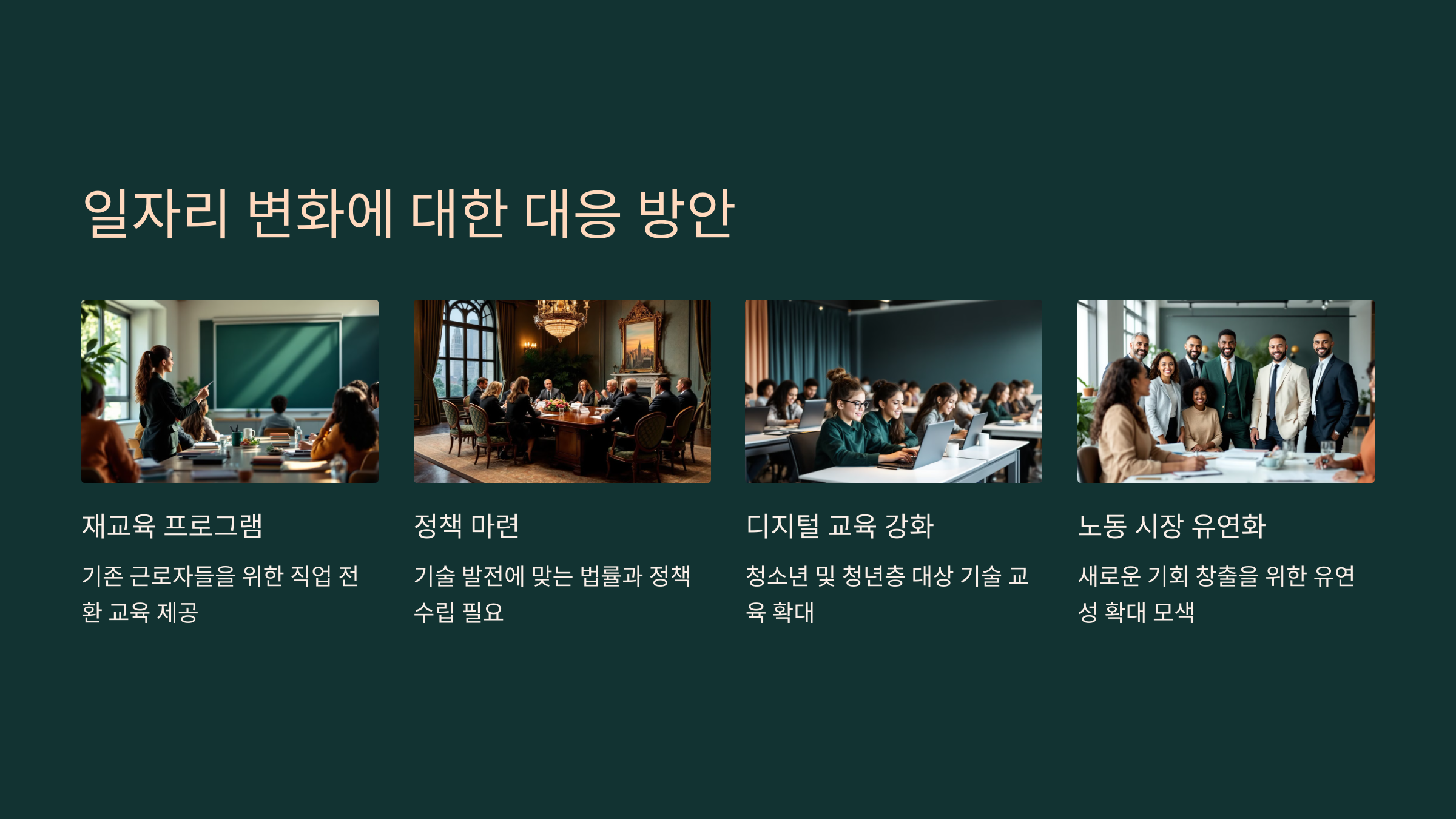 기존 근로자들을 위한 재교육과 직업 전환 프로그램이 중요합니다.