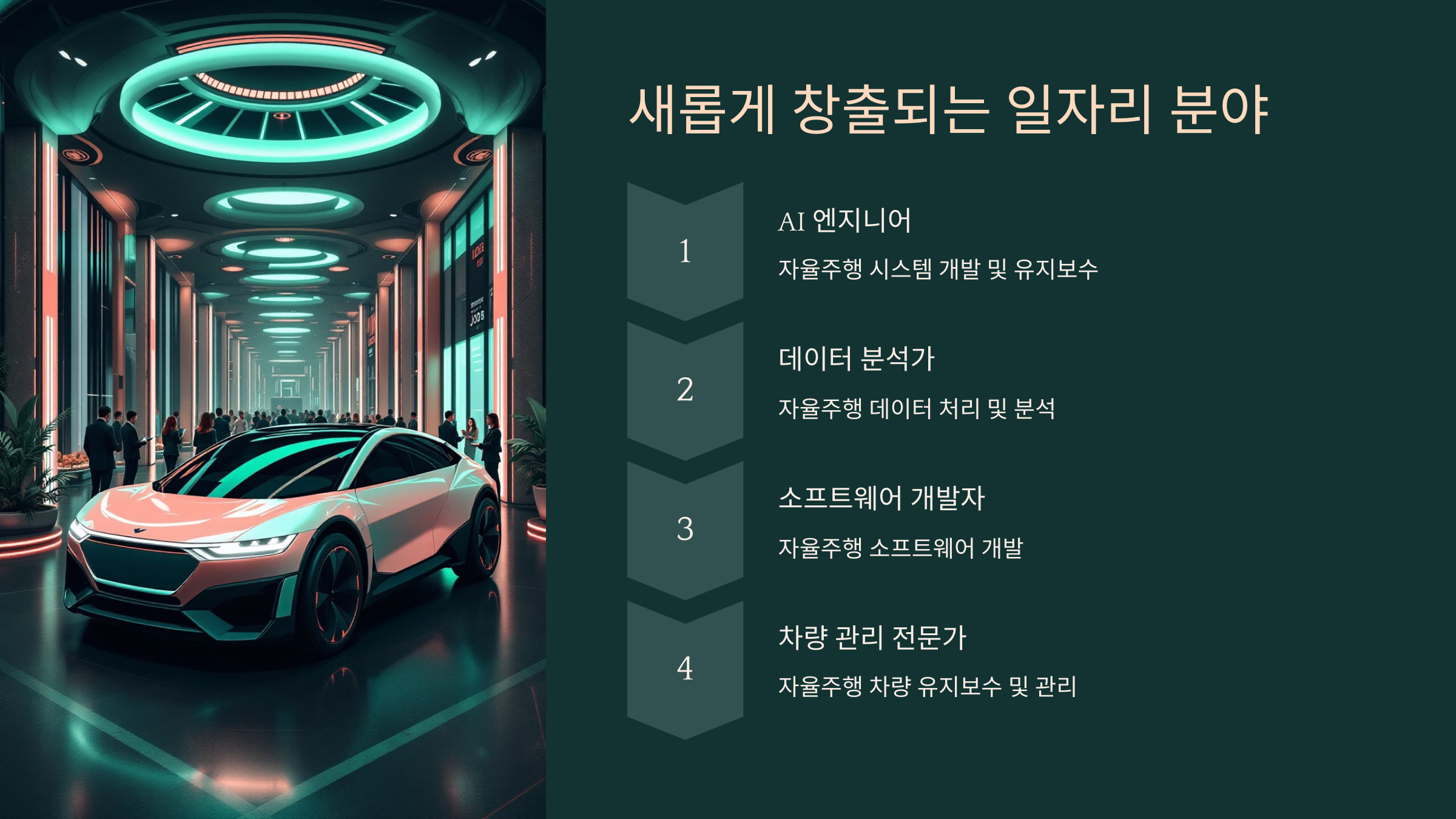 자율주행 기술은 새로운 산업과 일자리의 탄생을 촉진합니다.