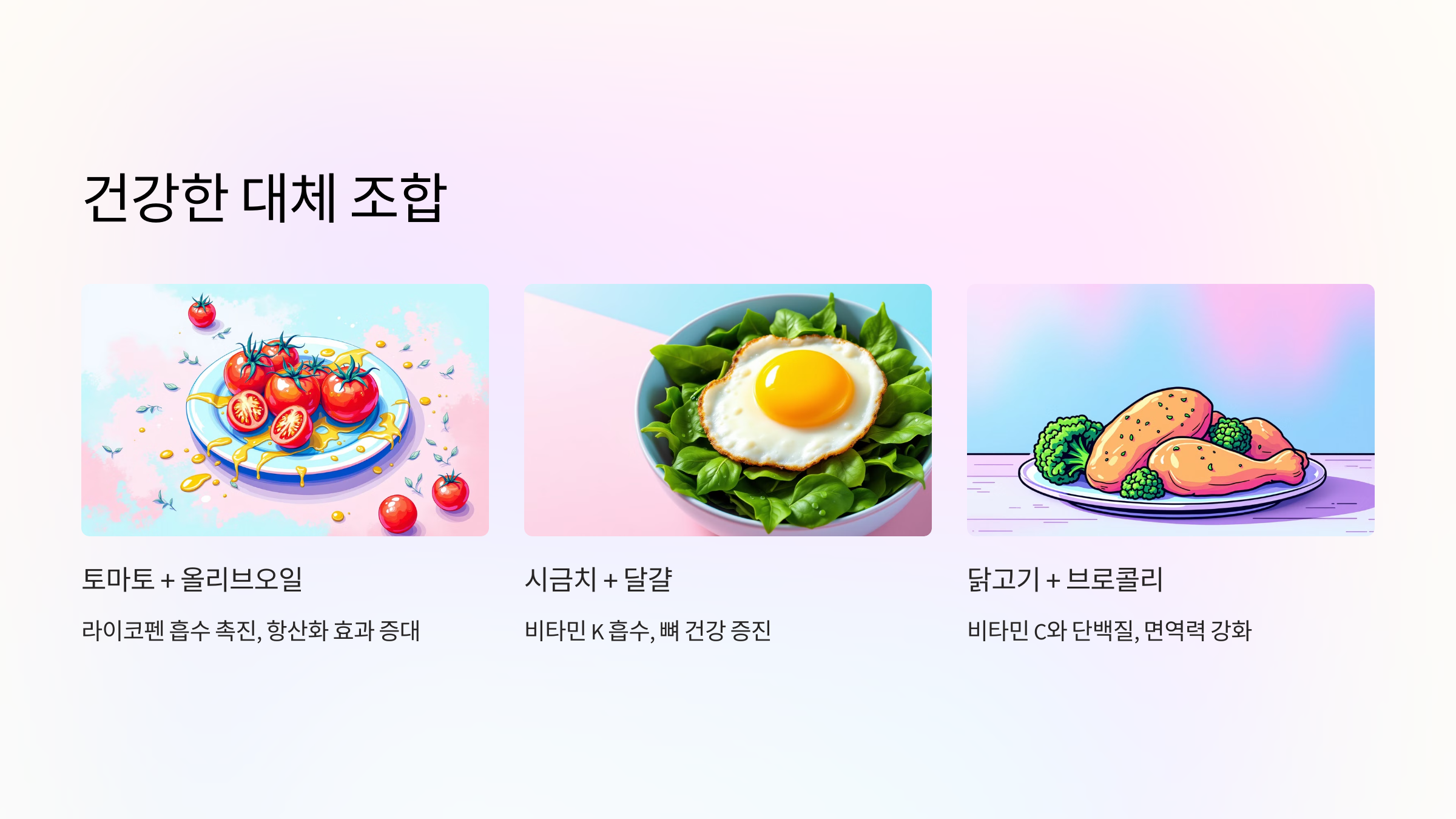 그렇다면 **건강한 음식 조합**은 어떤 것들이 있을까요? 🥗🍳