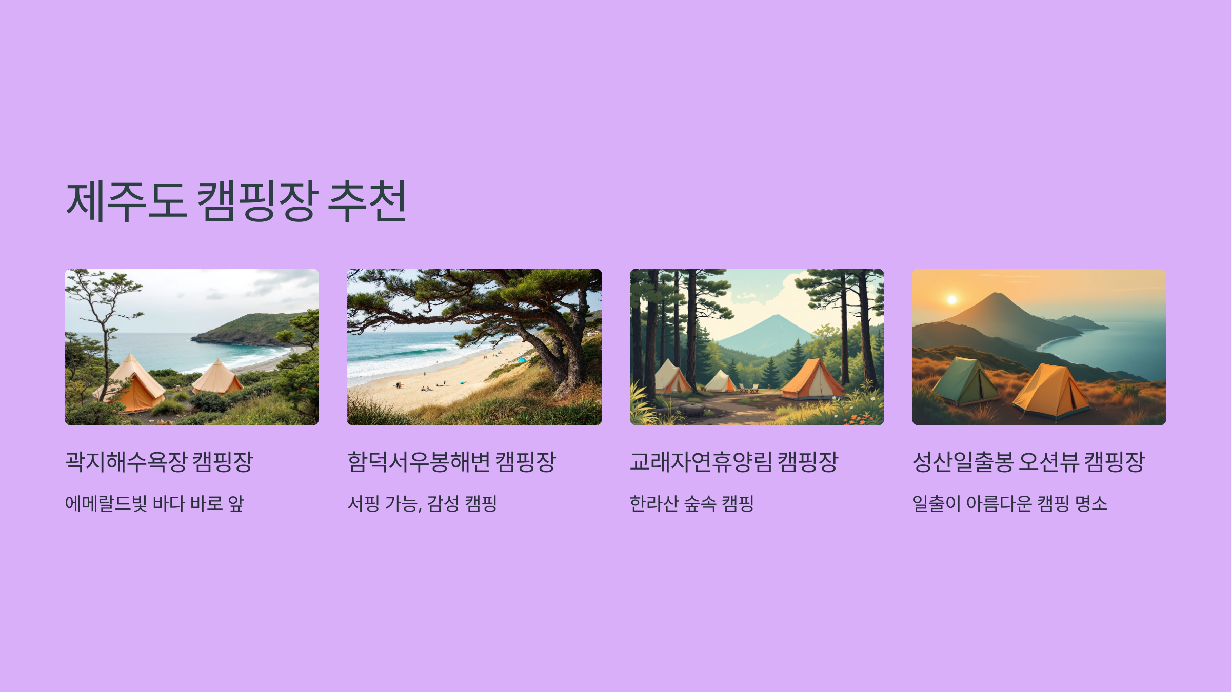 푸른 바다를 앞에 두고 감성 캠핑을 즐기거나, 한라산 숲속에서 힐링할 수 있는 제주도 캠핑 명소를 소개할게요! 🏝️
