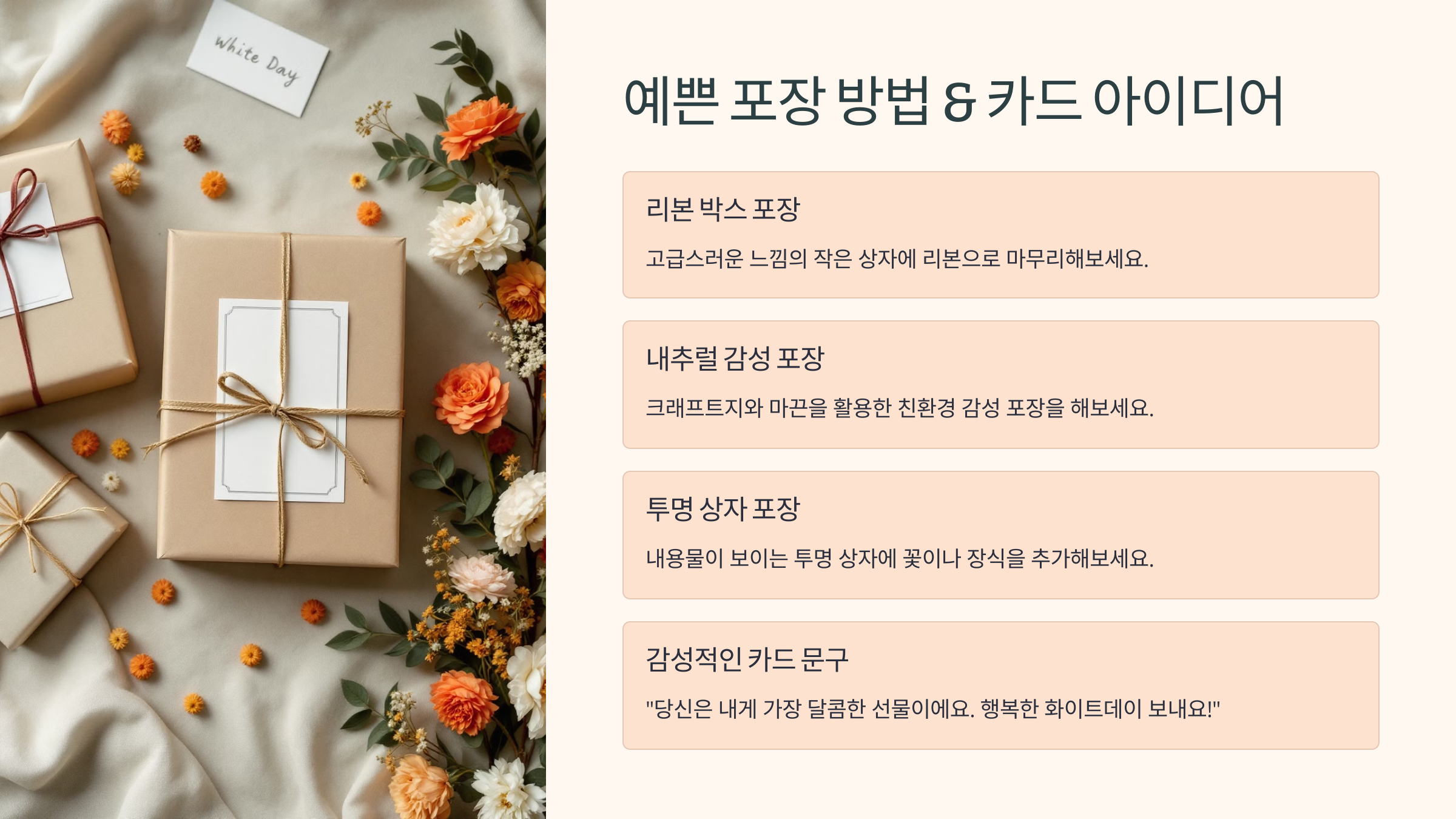 - 🎀 예쁜 포장까지 신경 쓰면 선물의 완성도가 높아져요!