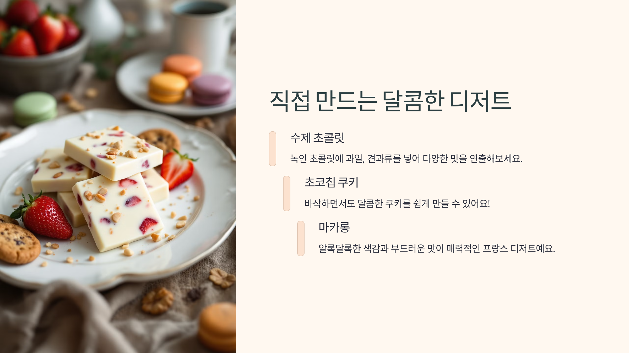 화이트데이 선물로 직접 만든 디저트를 준비하면 더욱 감동적인 선물이 될 수 있어요! 💕 간단한 레시피만 따라 하면 누구나 쉽게 만들 수 있답니다.