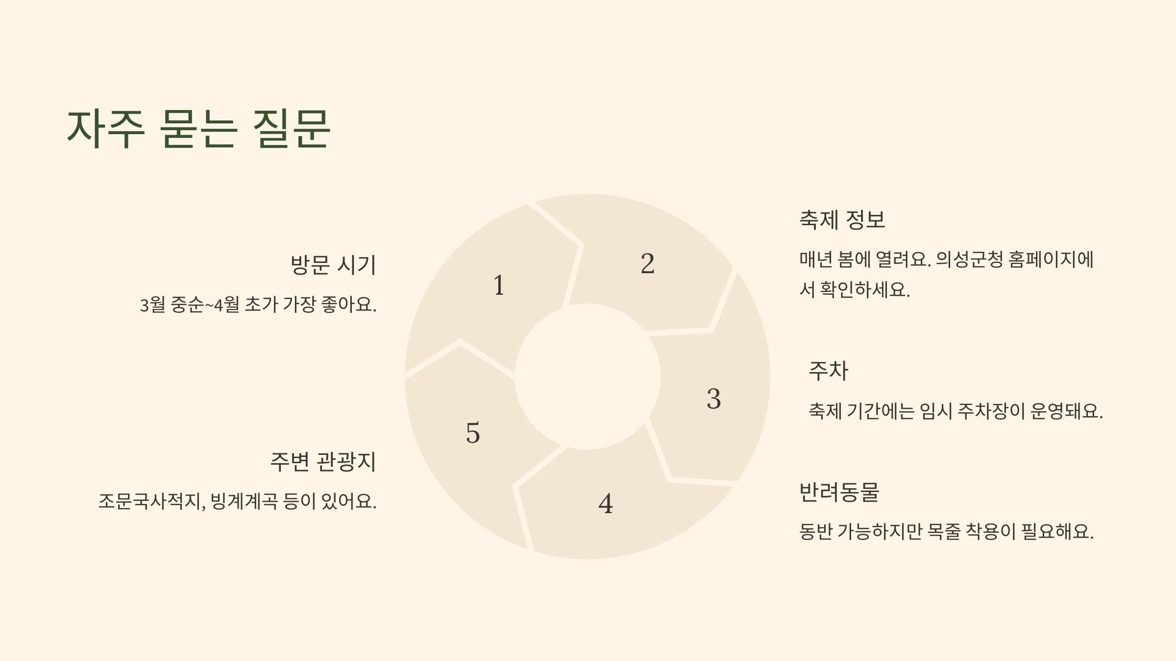 A2. 네, 매년 봄에 열려요. 정확한 일정은 의성군청 홈페이지나 공식 SNS에서 확인하는 게 좋아요.