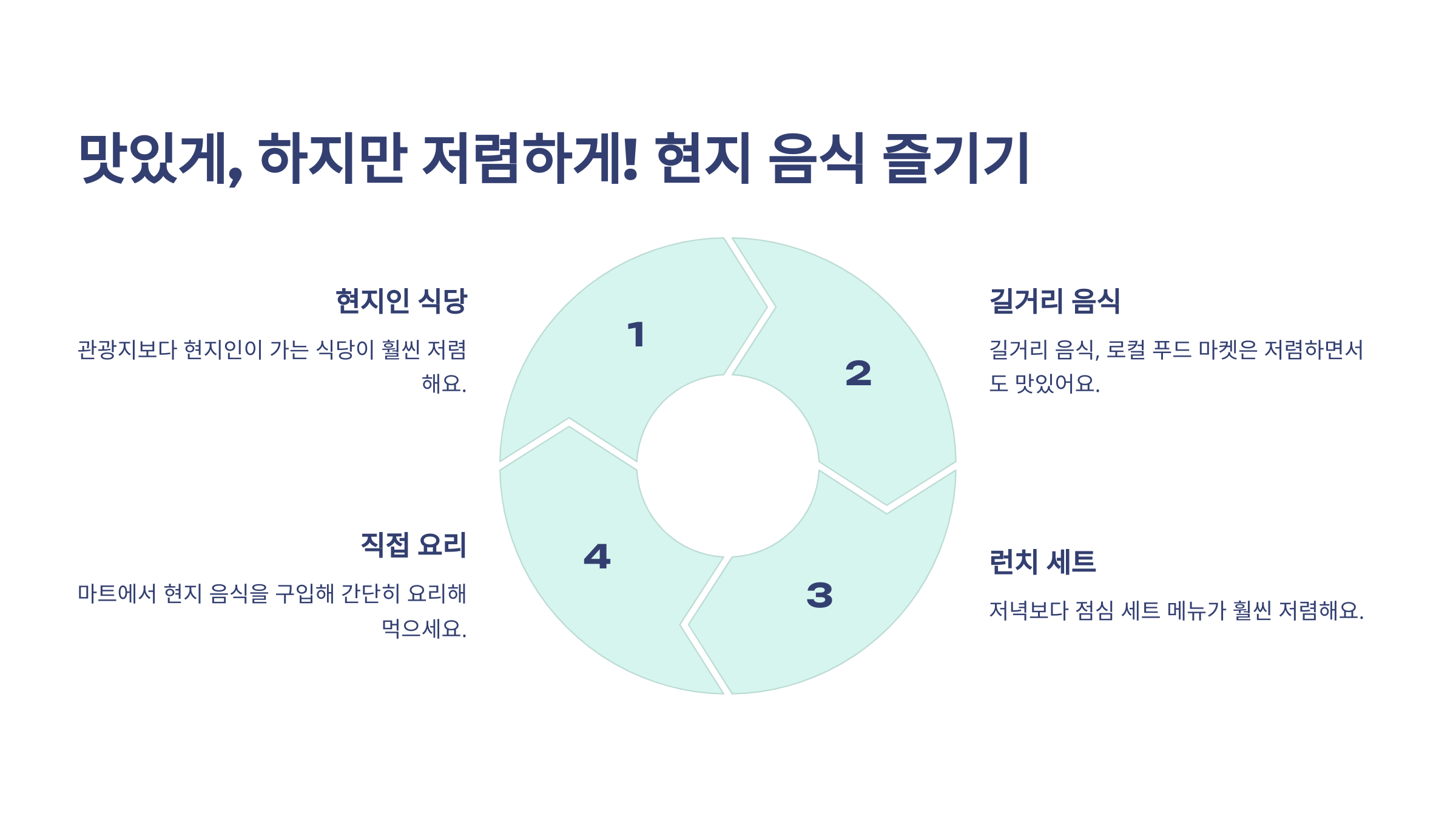 이제 맛있는 현지 음식을 저렴하게 즐기는 방법도 알아볼까요? 🍽️