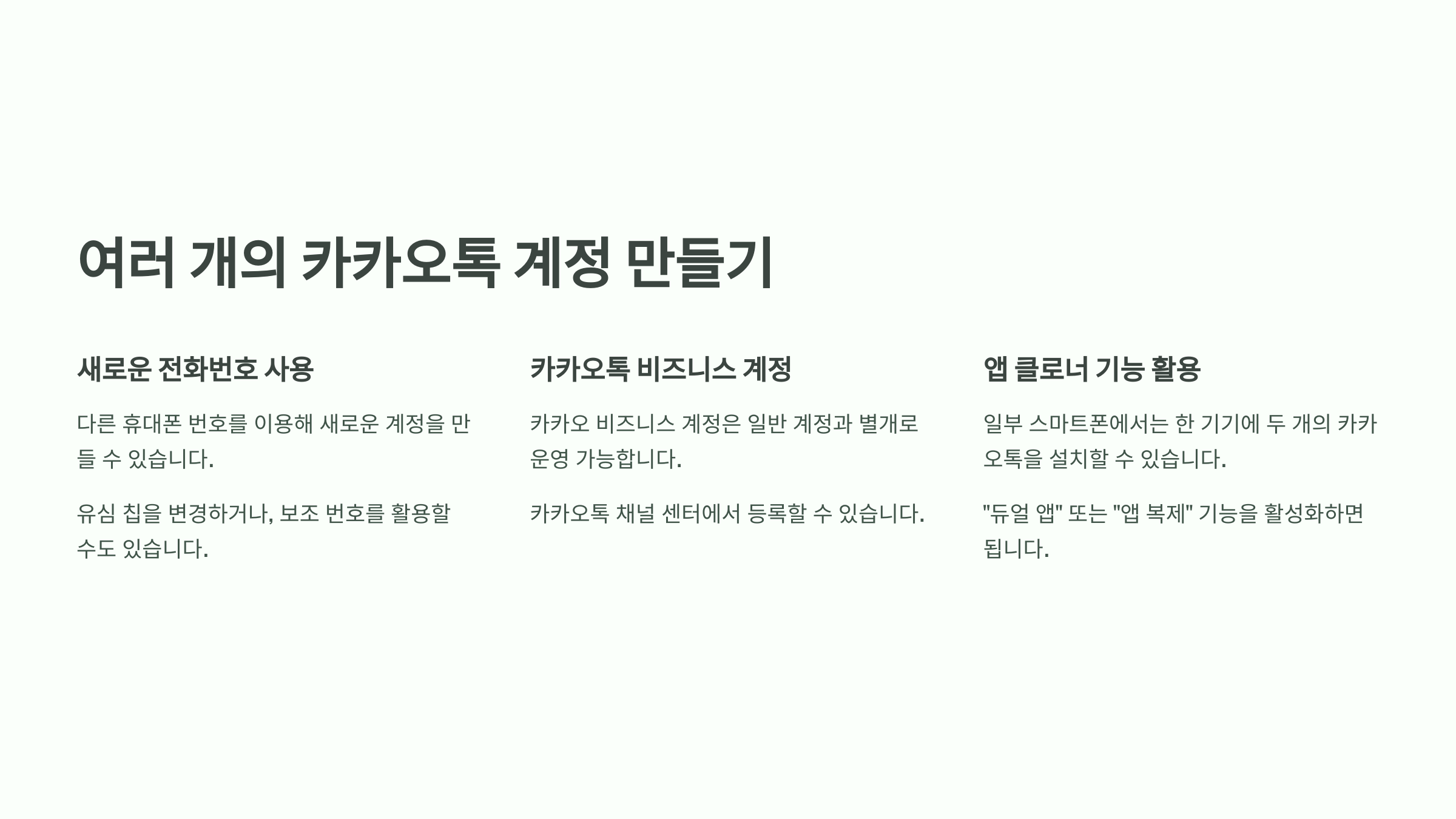 📌 여러 개의 카카오톡 계정 만들기 비교표